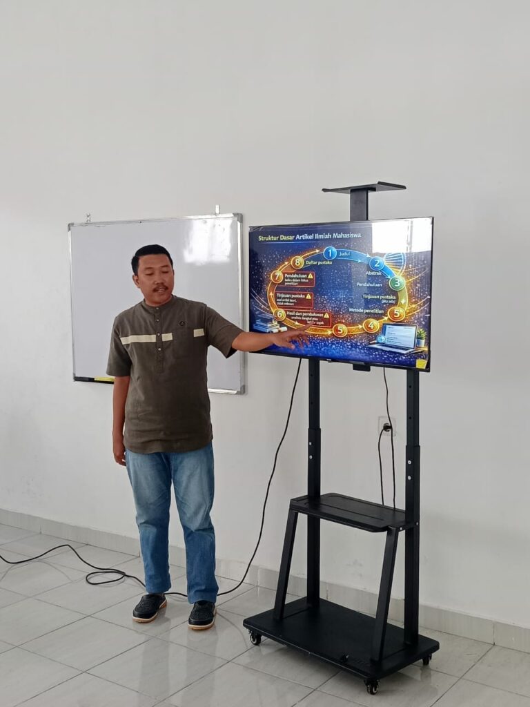 Melalui pemaparan tersebut, peserta memahami bahwa artikel ilmiah bukan sekadar rangkaian teori atau kumpulan kutipan, melainkan bangunan argumen yang disusun sistematis, berbasis data empiris, serta ditopang referensi relevan dan mutakhir. Kesesuaian antara judul, abstrak, pendahuluan, metode, pembahasan, dan kesimpulan menjadi satu kesatuan utuh yang saling menguatkan.